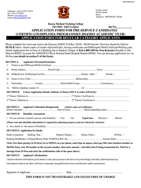 Read kmtc application form 2014 2015 Board Book PDF